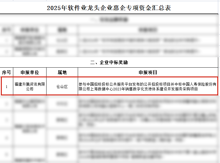 在软件产业领域,升腾同样收获政策红利。根据福州市工信局、市财政局《关于开展2025年度软件业龙头企业惠企政策申报工作的通知》(榕工信行规〔2025〕19号),经多部门严格审议,升腾“中国人寿保险股份有限公司上海数据中心2023年销售数字化支持体系建设开发服务采购项目”,入选“2025年软件业龙头企业惠企专项资金拟奖补项目”,成为13个获补项目之一。